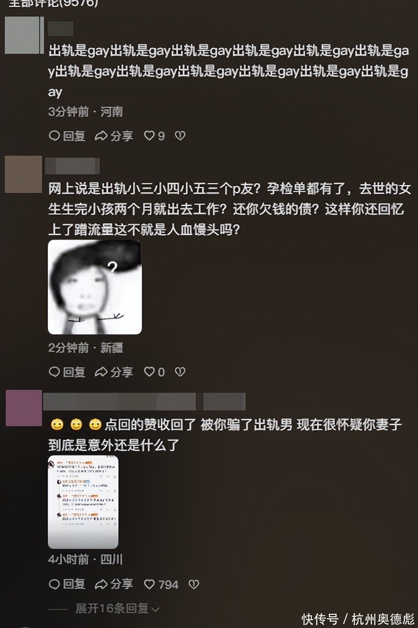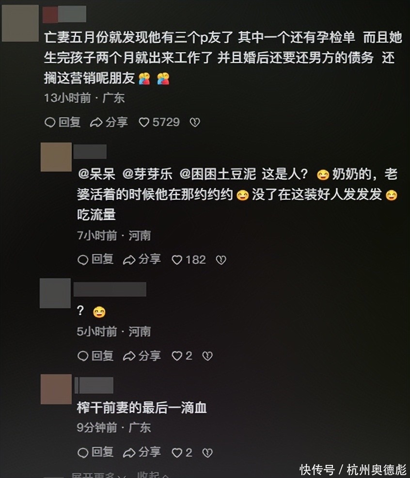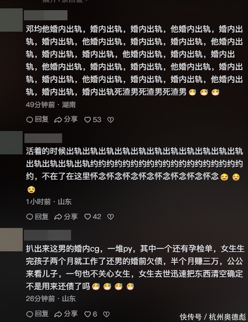 在邓某所有动态中,最多的一条留言就是,亡妻五月份就发现他有三个p友了,其中一个还有孕检单。