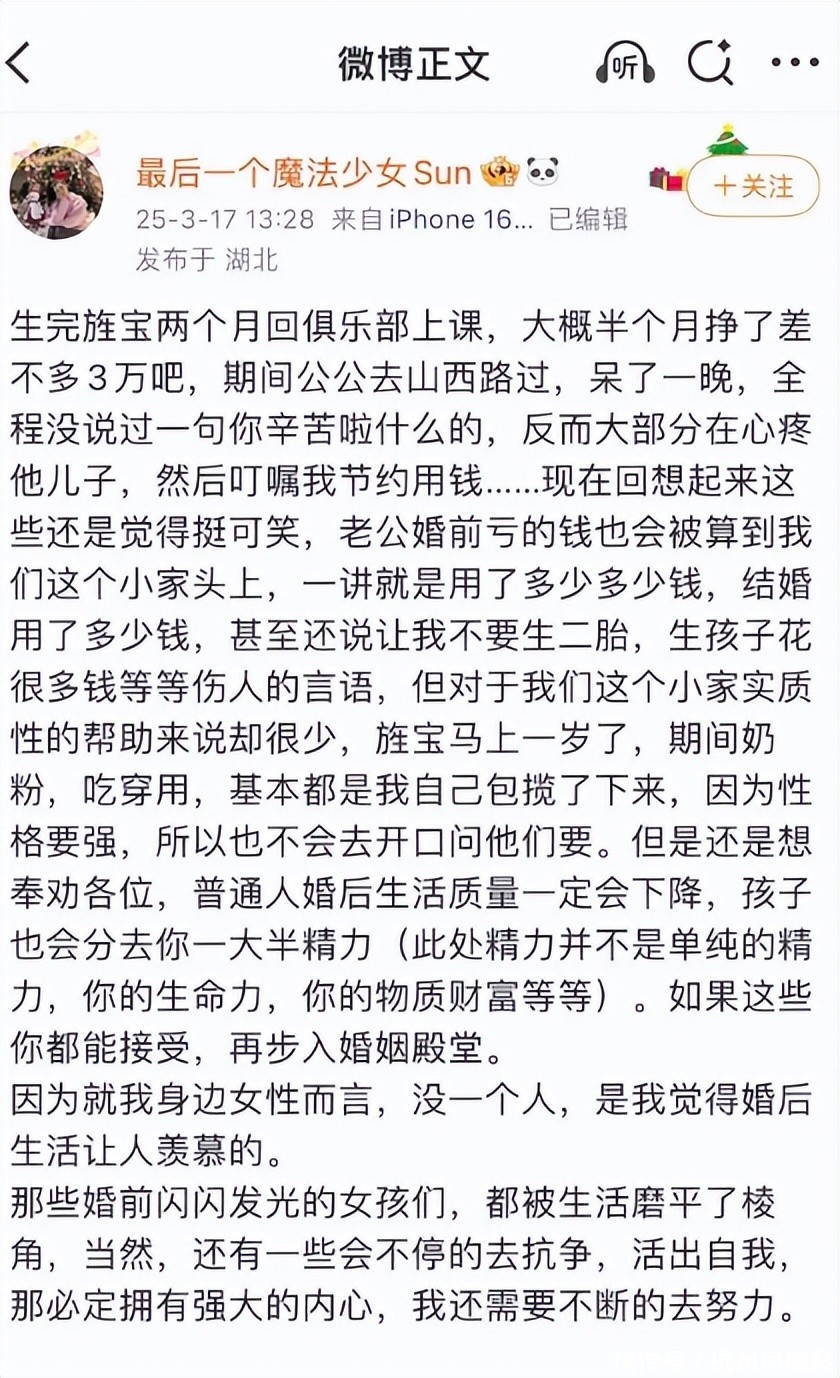 而且当邓某生完孩子之后,短短两个月就出来工作了,并且婚后还要还男方的债务,还搁这营销呢朋友。